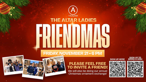 Before the holiday rush begins, take an evening to slow down and enjoy a night filled with laughter, good food, and friendship. The Altar Ladies are hosting our annual Friendmas Gathering—a time to connect, share, and celebrate the joy of the season together.